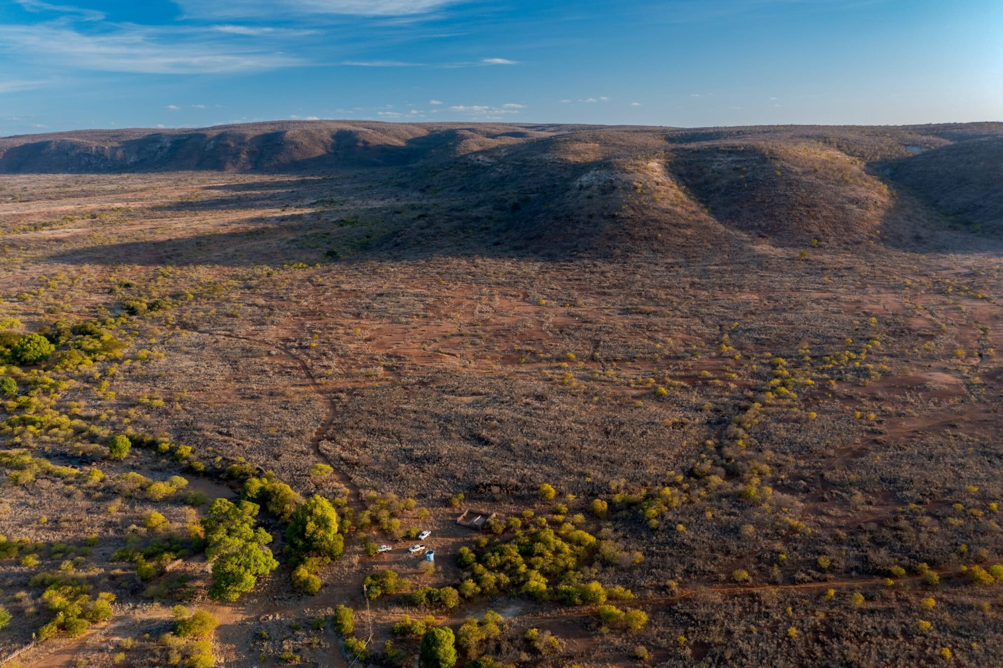 A paisagem arbustiva da Caatinga em Curaçá, Bahia, local do projeto de reintrodução da arara-azul. Imagem de Miguel Monteiro.
