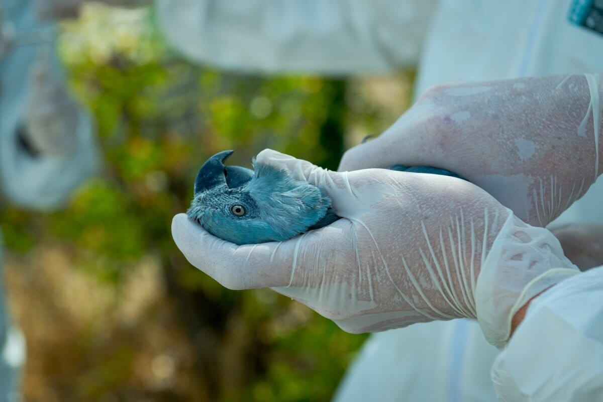Atualmente, existem apenas 11 araras-azuis-de-lear vivendo em liberdade em Curaçá, incluindo dois filhotes nascidos na natureza. As aves dependem de alimentação suplementar diária, o que significa que seu status atual na Lista Vermelha da IUCN de “extinta na natureza” ainda se mantém, disse Silveira.